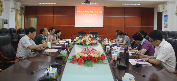 本网讯 6月13日,校长和飞会见了河北民族师范学院校长苏国安一行,双方就学校转型发展中的教育教学改革、创新创业教育、学科建设等方面内容进行交流。党办院办、教务处、教师教育学院相关负责人陪同。 和飞对苏国安一行的来访表示欢迎,他介绍了我校的基本情况和教育教学改革取得的成果。和飞表示,我校当前正处于省市共建、转型发展的契机,目前又获评硕士学位授予立项建设单位,申硕改大建设目标有了实质性突破。在...