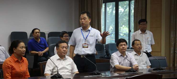本网讯 8月10日,省教育厅党组书记、厅长景李虎一行到我校调研,就我市中小学教育及我校省市共建和教师培训工作展开座谈。副市长陈宣群,我校党委书记曾桓松、党委副书记叶峥嵘、副校长林俊睦,市教育局长彭银祥等陪同调研。 景李虎一行首先实地查看了我校省级教师发展中心的建设情况,他们深入教师发展中心大楼的书画训练室、普通话测试站、远程交互中心、心理辅导室、教学设计室等功能室,了解设备设施的投入使用,...