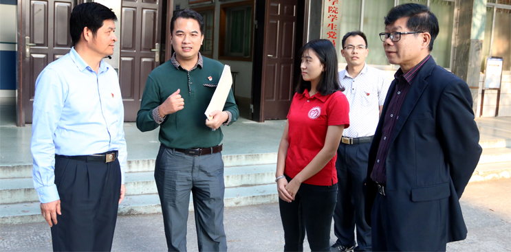 本网讯 10月23日,市委基层党建提升年活动办公室综合秘书组组长刘万良一行到我校检查基层党建示范点创建工作情况,对我校广东省西江流域柑橘产业协同创新中心党支部创建市级基层党建示范点给予具体指导。校党委书记曾桓松、党委副书记叶峥嵘陪同检查,校党委委员、组织部部长欧洪湛参加。 刘万良一行现场查看了我校柑橘产业协同创新中心党支部的创建情况,听取该支部书记吉前华教授对创建示范点工作的汇报,并仔细翻...