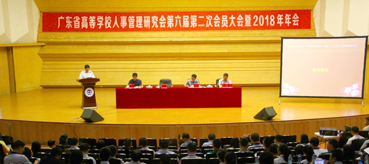 本网讯 6月14日,广东省高等学校人事管理研究会第六届第二次会员大会暨2018年年会在我校举行。本次年会由广东省高等学校人事管理研究会主办、我校协办。广东省教育厅人事处处长徐仕敏,华南师范大学副校长、广东省高等学校师资培训中心主任沈文淮,广东省教育厅师资管理处魏长松科长,我校党委书记曾桓松等领导出席,全省各高校人事部门负责人参加。 我校党委书记曾桓松代表学校致辞。他向参会的嘉宾与会员表示热烈...
