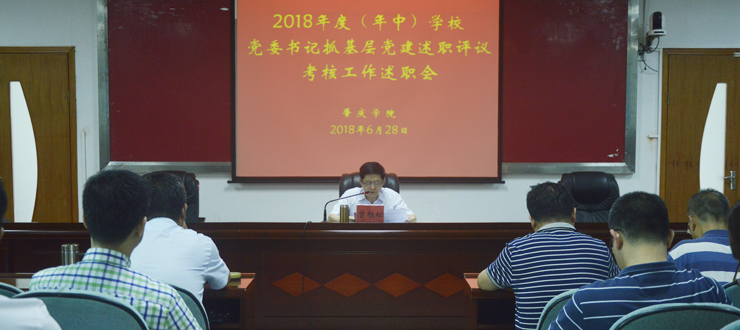 本网讯 6月28日,我校召开2018年度(年中)学校党委书记抓基层党建述职评议会议,校党委书记曾桓松作基层党建工作述职报告,并进行评议考核。校领导、校党委委员、中层正职领导干部、二级党委(党总支)副书记、师生党员代表、“两代表一委员”代表出席。 曾桓松总结我校2018年上半年党建主要工作。2018年,我校深入学习贯彻习近平新时代中国特色社会主义思想,不断提升政治理论水平。校党委会通过召开专题工作会议、...