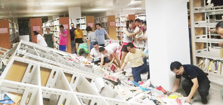 刷新人们对台风概念理解的超强台风“山竹”带着史无前例的破坏力,在9月16日这天正面吹袭我省,给我省各地带来巨大的破坏。而当台风抵肇之后,我校也饱受重创。随即,在校党委的统一领导下,广大干部职工投入到抗击台风、保卫校园的行动中。 当天下午,在台风的猛烈吹击下,图书馆5楼、6楼书库的玻璃窗破碎,横冲直撞的风雨乘机灌入书库,掀翻书架,打散书籍。常识告诉我们,纸质图书一旦沾水,就很容易变质、发霉、腐...