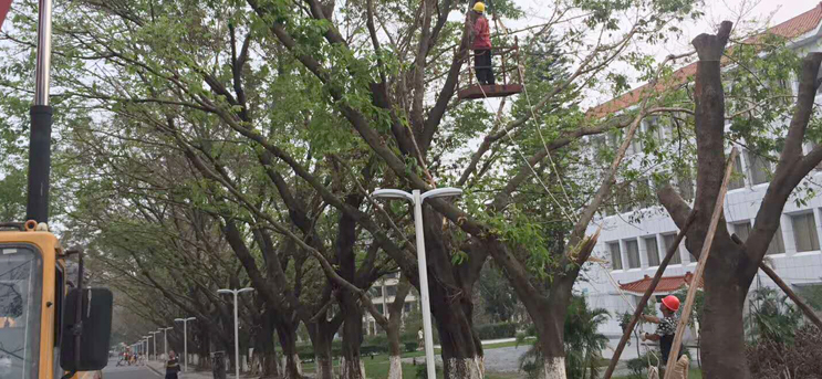 超强台风“山竹”刚刚离境,抗灾复产工作随即在我校全面铺开。作为抗灾复产工作的主力军,后勤管理处的干部职工冲锋在前,一线作战,充分展示了新时代后勤人勇于担当、不辱使命的精神风貌。众多的校园设施在这场史无前例的风灾中遭受重创,其中尤以绿化设施受损最为严重。包括海容路近米粗的榕树在内,大批的树木被吹折吹断;包括西苑教工宿舍区20余米高的白兰在内,更大批的树木被吹倾吹覆。纵观全校,折断的树木和倾覆的树...