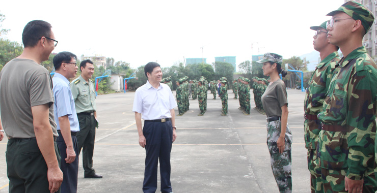 本网讯 9月26日,校党委书记曾桓松、校党委副书记叶峥嵘在保卫处、武装部相关负责人的陪同下,来到新生军训场地看望慰问参训新生和教官,了解新生的军训情况。 军训现场,各个阵营精神抖擞、士气高昂、口号声声,一派热火朝天的军训场景。 军训教官的选拔是我校军训工作的一个创新,从2016年开始,我校开始在全校范围内选拔思想觉悟高、身体素质好的学生,经过严格训练,他们走上军训场,担任新生的军训教官。实...