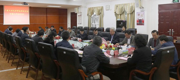 本网讯 按照省委组织部、省委教育工委的部署,12月7日,广东工业大学党委副书记陈良友率领帮扶工作队与我校进行对接,为我校推进“冲补强”提升计划,加强内涵建设,增强办学实力带来强有力的支持、帮助。 广东工业大学校党委常委、副校长陈为民,该校相关职能部门负责人,以及帮扶工作队全体成员,我校党委书记曾桓松,校党委副书记叶峥嵘,校党委副书记、纪委书记黄劲松,副校长王忠、林俊睦,校党委委员以及相关职...