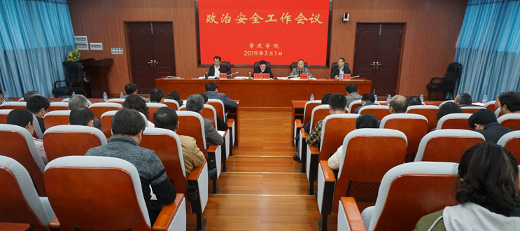 本网讯 3月1日,我校召开政治安全工作会议。校党委书记曾桓松传达全省教育系统党的建设暨意识形态安全工作会议精神,以及中央和省委关于坚持底线思维着力防范化解重大风险专题研讨班精神,强调全校党员干部和师生员工要提高政治站位,坚定政治立场,坚定远大理想和共同理想,进一步树牢“四个意识”,坚定“四个自信”,坚决做到“两个维护”,自觉在思想上政治上行动上同以习近平同志为核心的党中央保持高度一致,认真贯彻落...