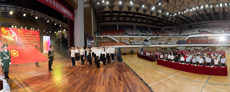 本报讯 5月19日,我校纪念五四运动100周年特别主题团日活动在体育馆隆重举行。活动以“青春心向党,建功新时代”为主题,引领师生深入学习贯彻习近平总书记在纪念五四运动100周年大会上的讲话精神,传承和弘扬以“爱国、进步、民主、科学”为核心的五四精神,刻苦学习,努力工作,为实现中华民族伟大复兴的“中国梦”贡献力量。 校党委书记曾桓松,副校长王忠,团市委书记唐莹,校党委委员朱为鸿、欧洪湛、丁孝智、沈...