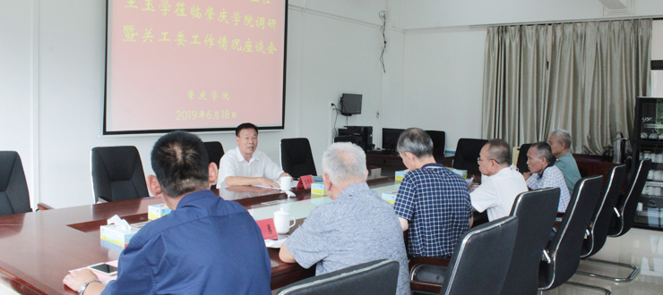 本网讯 6月18日,广东省教育系统关工委主任王玉学到我校调研关工委工作,校党委副书记黄劲松陪同并汇报。 黄劲松代表校党委对省关工委会我校的工作支持给予感谢,他简要介绍我校有关情况。我校关工委成立21年以来,在省教育系统关工委和学校党委的领导、指导下,紧密联系学校实际,建设了骨干队伍、专项队伍与特殊队伍,认真做好关心广大青年的工作,树立了自己的特色品牌,在“大学生三下乡”“自强之星”“援藏支教...