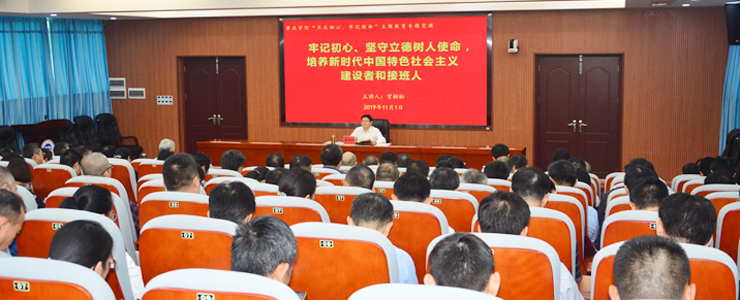 本网讯 11月1日,根据“不忘初心、牢记使命”主题教育的安排,校党委书记曾桓松以《牢记初心,坚守立德树人使命,培养新时代中国特色社会主义建设者和接班人》为题,上了一堂生动的党课。校领导、中层干部和主题教育办各工作组组长出席。 曾桓松首先从教育的基础性、方向性、根本性和关键性等角度带领大家认真学习领会习近平总书记关于教育的系列重要讲话精神。他指出,教育是民族振兴、社会进步的重要基石,是国之大...