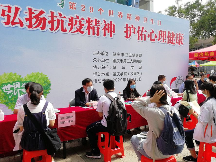 为深入贯彻落实党的十九大精神和习近平总书记在全国卫生与健康大会上的重要讲话精神,深化心理健康促进行动,我校作为协办单位,积极参加由肇庆市卫生健康局主办、肇庆市第三人民医院承办的 “世界精神卫生日”活动,在校园里弘扬抗疫精神,护佑心理健康,为青年学子健康成长提供指导和帮助。 10月10日,活动在紫荆路第三饭堂侧展开。市卫生健康局二级调研员伍润文,校党委副书记谢冠华等领导出席了本次活动。参加活动的...