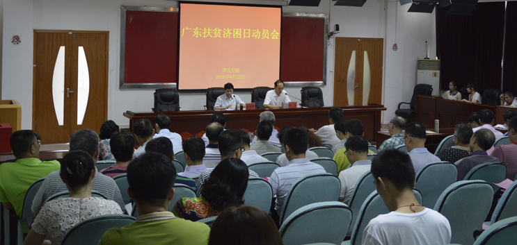 本网讯(记者 张国荣 谢彭惠)为有效完成新时期脱贫攻坚任务,积极响应市慈善会发出的“扶贫济困日”活动倡议,6月22日下午,我校召开动员会布置2016年 “广东扶贫济困日”各项活动,同时举行捐款仪式。校党委书记曾桓松、校长和飞等校领导出席。 曾桓松指出,新时期精准扶贫、精准脱贫三年攻坚工作目前已经全面展开。在“扶贫济困日”来临之际,我校发动广大教职工开展募捐活动,目的就是要募集资金,同时引导广大教...