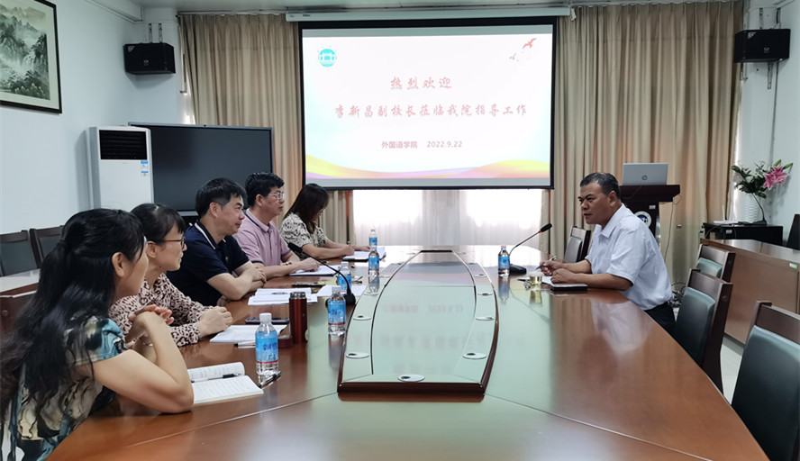 本网讯 9月22日,副校长李新昌到外国语学院开展调研,表示要不断增强创新驱动发展的意识和能力,以饱满的精神面貌和优异的工作成绩迎接党的二十大胜利召开。学院党委书记吕伟荣主持座谈会。吕伟荣汇报了2022年以来学院党建、学科建设和科研、实验室建设、疫情防控、安全维稳等方面的工作,分析了学院发展存在的短板与不足,介绍了学院下一步发展思路。与会人员还就学院的师资队伍建设、师范认证、教育教学、审核评估、申硕...
