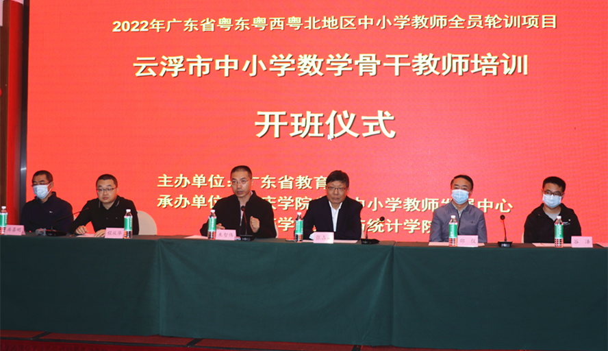 本网讯 11月5日, 由数学与统计学院承办的广东省粤东西北地区中小学教师全员轮训项目云浮市中小学数学骨干教师培训班开班。教师教育学院党总支书记张占亮、数学与统计学院院长朱智伟出席开班典礼,项目负责人程从华主持。 张占亮介绍培训项目对于广东基础教育师资队伍建设的意义,分析广东省尤其是粤东西北地区基础教育形势,对学员提出殷切期望。朱智伟希望学员们利用培训机会互相交流,更新教学理念,提升云浮市的基...