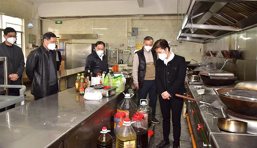 本网讯 为进一步压紧压实食堂食品安全属地管理责任和学校主体责任,12月29日,肇庆市副市长何婧率市、区市场监督管理局相关负责人深入我校食堂开展食品安全“两个责任”包保督导,校长吴业春、副校长唐冬冬和后勤管理处相关人员陪同。 何婧一行深入教工餐厅厨房和食品原材料加工现场,对照落实食品安全“两个责任”清单,对我校落实食品安全责任制、食品原材料采购、食品添加剂管理、原材料储存与加工、食品安全总监及...