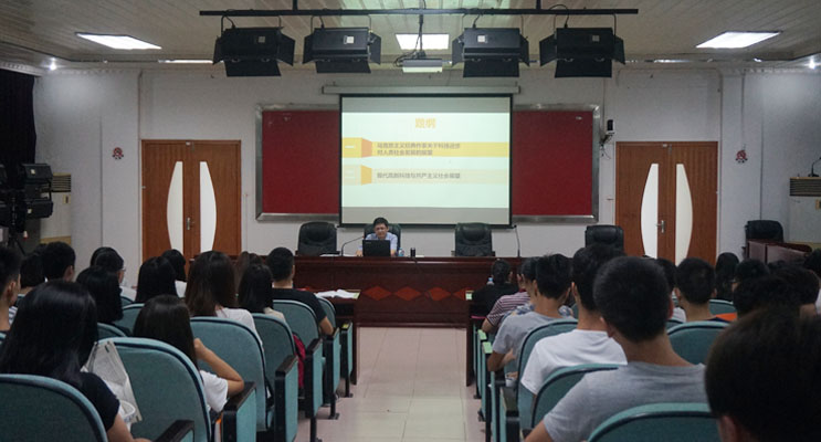 本网讯 按照省委教育工委、省教育厅关于高校书记校长上好开学初第一堂思想政治理论课的要求,我校认真开展书记、校长上第一堂思想政治理论课活动。8月31日,校党委书记曾桓松、校长和飞分别为2015级美术学院美术学、环境设计专业和教育学院小学教育、学前本科专业的同学讲授新学期第一堂思想政治理论课。 “自然力的征服,机器的采用,化学在工业和农业中的应用,轮船的行驶,铁路的通行,电报的使用,整个大陆的开垦...