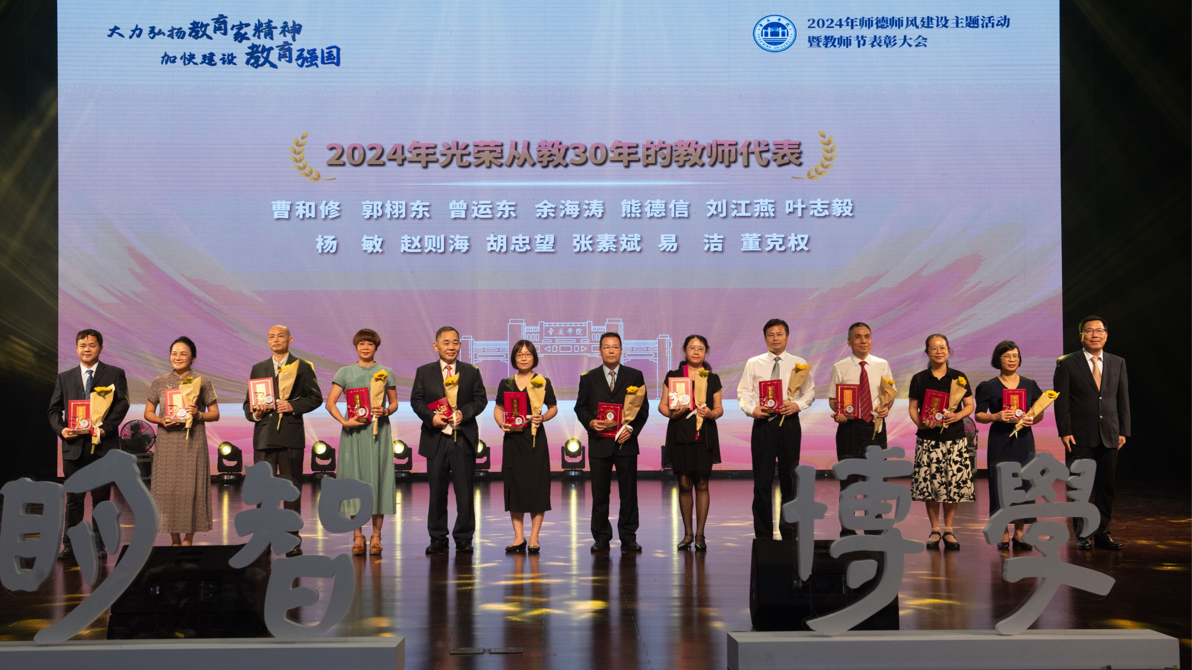 本网讯 9月10日,在第40个教师节来临之际,我校隆重召开教师节表彰大会,表彰先进个人与集体,共兴尊师风尚,响应“大力弘扬教育家精神,加快建设教育强国”的时代主题。校党委书记谢冠华,校党委副书记欧洪湛,副校长肖起清、李新昌、唐冬冬、胡文涛,广东工业大学帮扶工作队队长刘怡军等校领导在前排就坐,全体中层领导干部、获奖教师和师生代表参加。本次表彰大会由文学与传媒学院向海燕老师主持。大会上,谢冠华发表了热情洋溢的教师节祝辞,...