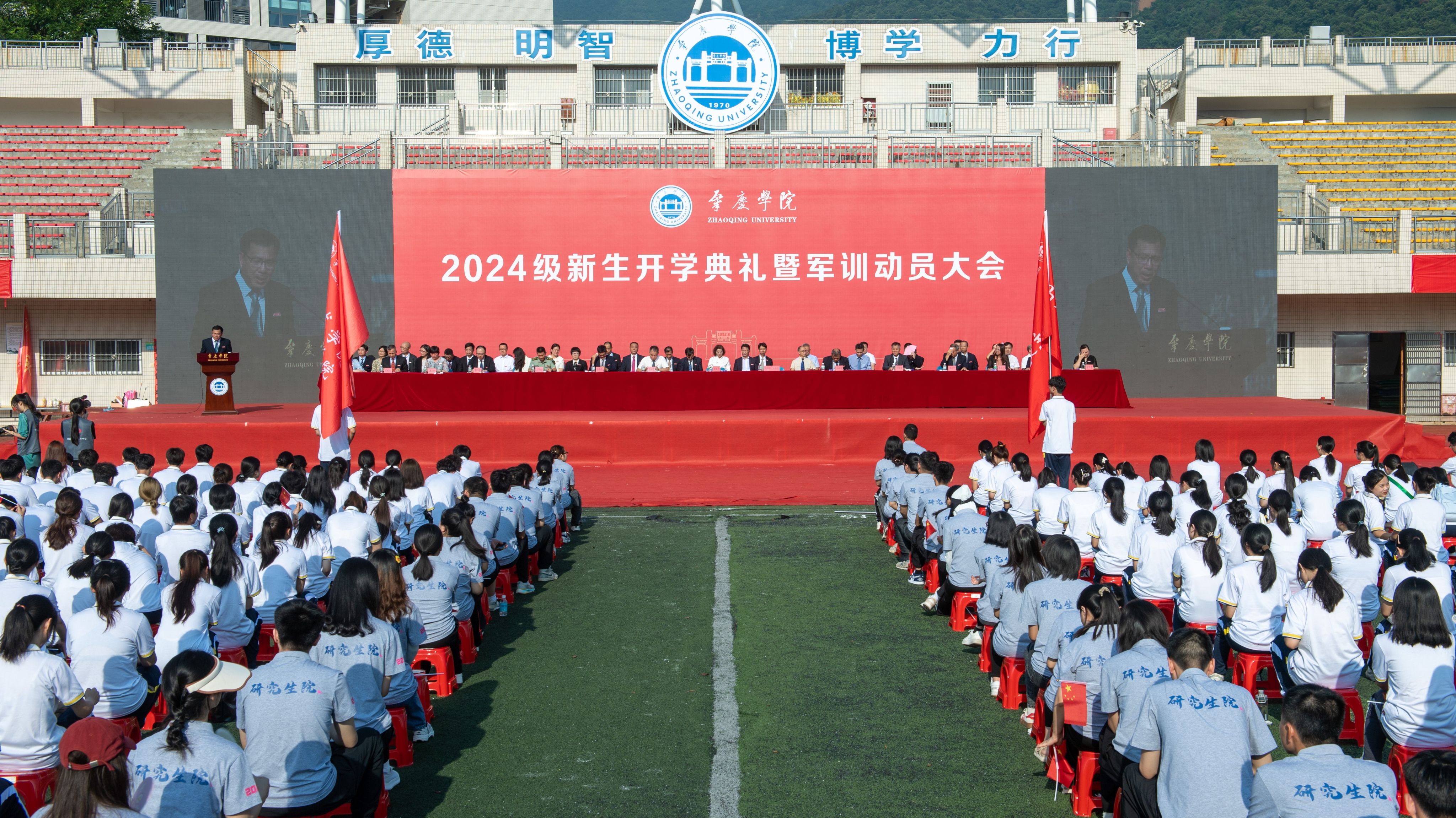 本网讯 9月11日,2024级新生开学典礼暨军训动员大会在第二田径场隆重举行。校党委书记谢冠华,校党委副书记欧洪湛,副校长肖起清、李新昌、唐冬冬,帮扶工作队队长刘怡军,肇庆军分区战备建设处副处长孙华刚,校党委委员、相关职能部门的主要负责人以及各二级学院党委书记、院长在主席台就座,各二级学院副院长、副书记、辅导员、新生班班主任、学生带班党员参加本次开学典礼暨军训动员大会,会议由欧洪湛主持。5600余名本科生和100多名研究生同时在肇庆学院开启求学新篇章。...