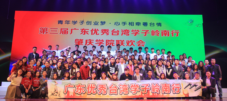 本网讯 11月28日晚,第三届广东优秀台湾学子岭南行肇庆学院联欢会在艺术大楼剧场举行。广东省台办刘小青处长、肇庆市台办邹小玲主任,校长和飞、校党委副书记叶峥嵘等领导出席联欢会。 晚会开始前,和飞代表我校对广东优秀台湾学子岭南行交流团的到来表示热烈欢迎,祝愿肇台两地学子互相交流,增进友谊,共同进步。 晚会上,粤台两地师生展示才艺,传达友谊。我校管乐团带来的演奏《北京喜讯到边寨》拉开了晚会...