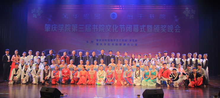 本网讯 12月1日晚上,第三届书院文化节闭幕式暨颁奖晚会在肇庆艺术中心举行,校长和飞、校党委副书记叶峥嵘出席,四大书院及各二级学院学生代表参加。晚会表彰了书院文化节各项活动的获奖者,并通过精彩的文艺表演展现书院文化内涵。 颁奖环节中,“青春书院•励志榜样”书院标兵、“幸福书院•圆梦砚园”主题征文、“乒乓有形•快乐无限”乒乓球比赛、“书院美景•光影长存”摄影比赛四项特色活动的获奖者接受颁奖。...