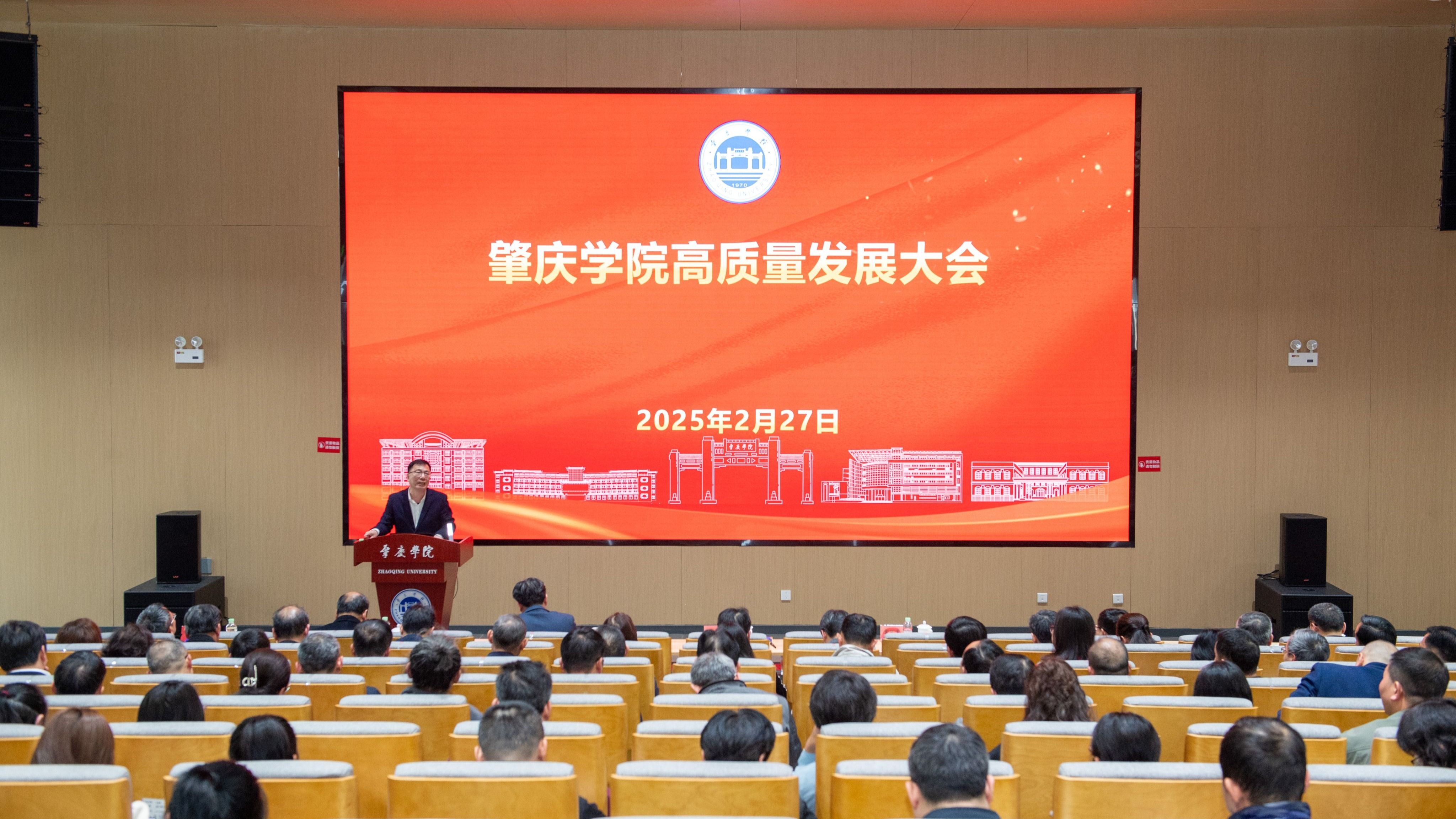 本网讯 2月27日,学校召开高质量发展大会,全面贯彻落实党的二十届三中全会精神,深入学习贯彻习近平总书记对广东系列重要讲话和重要指示精神和关于教育的重要论述,学习贯彻《教育强国建设规划纲要(2024-2035年)》,落实2025年全国教育工作会议、全省高质量发展大会精神,研讨学校深化改革的突破口和发力点,科学谋划内部治理和改革发展进位提质增效,凝聚思想共识,开启奋进新程。党委书记谢冠华,党委副书记欧洪湛,副校长肖起清、...