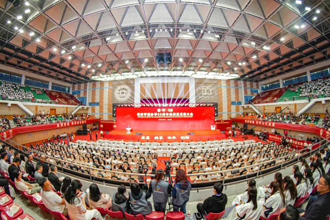 本网讯 金风送爽,翰墨留香,五十五载春秋荣光。11月15日,学校以"向新向上,以质图强"为主题,在体育馆举行办学55周年高质量发展大会,回顾学校55年来办学历程,开启新征程高质量发展美好篇章。肇庆市委书记,市人大常委会主任张爱军,中国科学院院士、华南理工大学教授吴硕贤,中国音协管乐学会主席、中国人民解放军军乐团原团长、国家一级指挥于海,广东省文史馆馆员、著名书法家、书法理论家、诗人、作家孔见,肇庆市人民政府副市长邹莹,...
