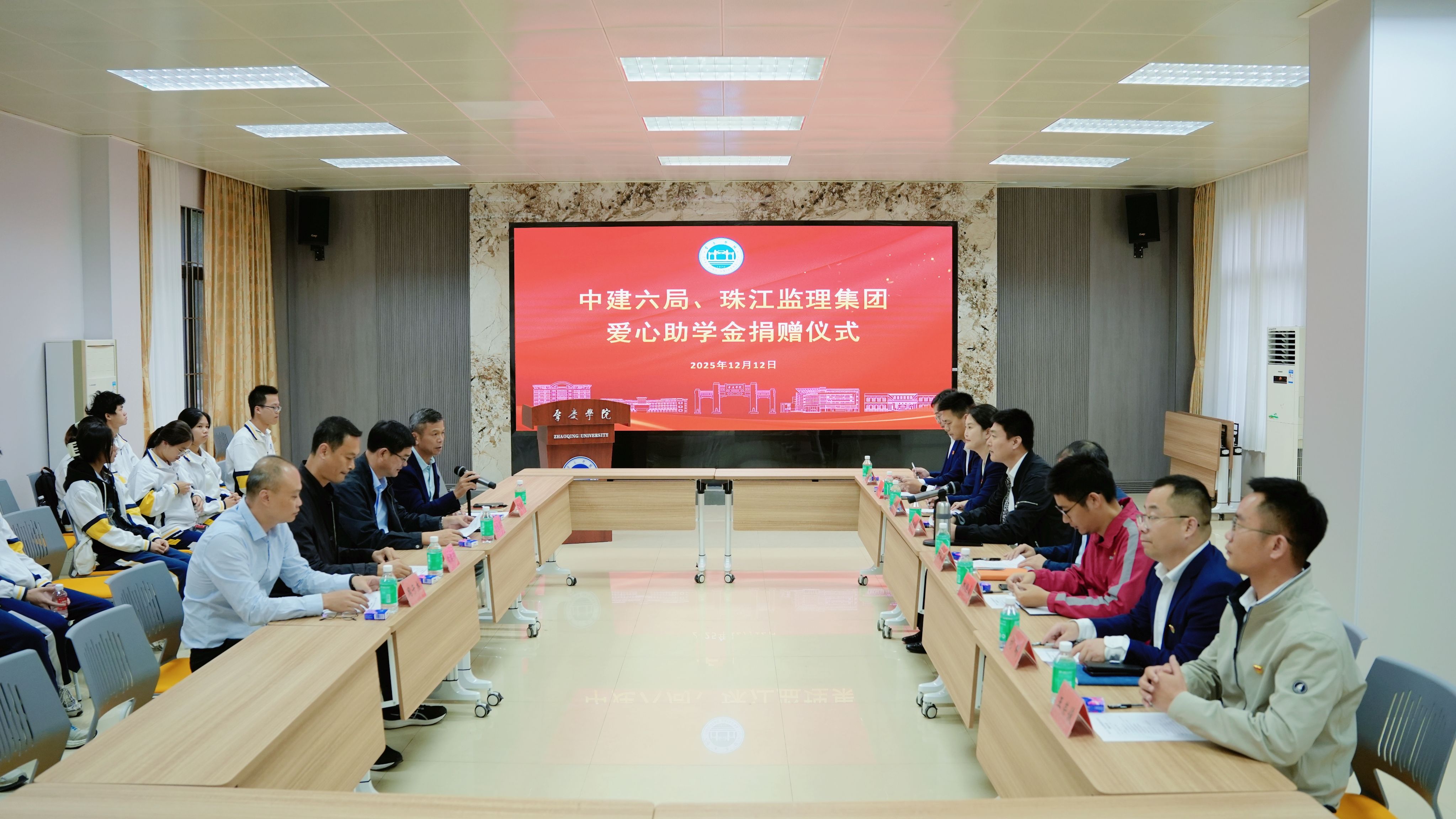 本网讯 12月12日下午,中建六局第二建设有限公司与广州珠江监理咨询集团有限公司爱心助学金捐赠仪式在我校行政楼一楼招聘厅隆重举行。副校长唐冬冬,中建六局与珠江监理集团有关领导出席捐赠仪式。唐冬冬代表学校向两家企业致以衷心感谢和崇高敬意。他在讲话中指出,中建六局与珠江监理集团的善举,是对“扶危济困、崇文重教”中华民族传统美德的生动传承,为校园注入了强大的正能量。他勉励所有受助学生,要常怀感恩之心,将关爱转化为刻苦学习的动力,...