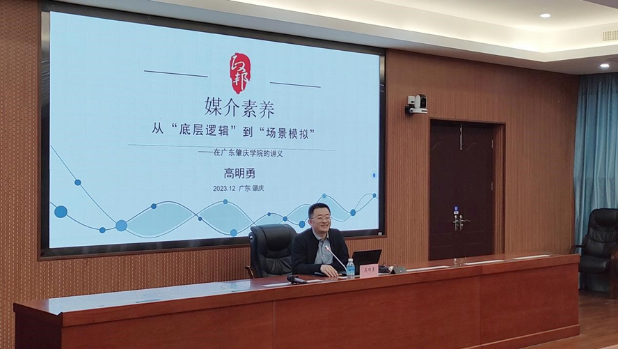 本网讯 12月4日,文学院邀请凤凰网政邦智库理事长高明勇教授开展以《媒介素养:从“底层逻辑”到“场景模拟”》为主题的专题讲座。副院长杨红军参加。