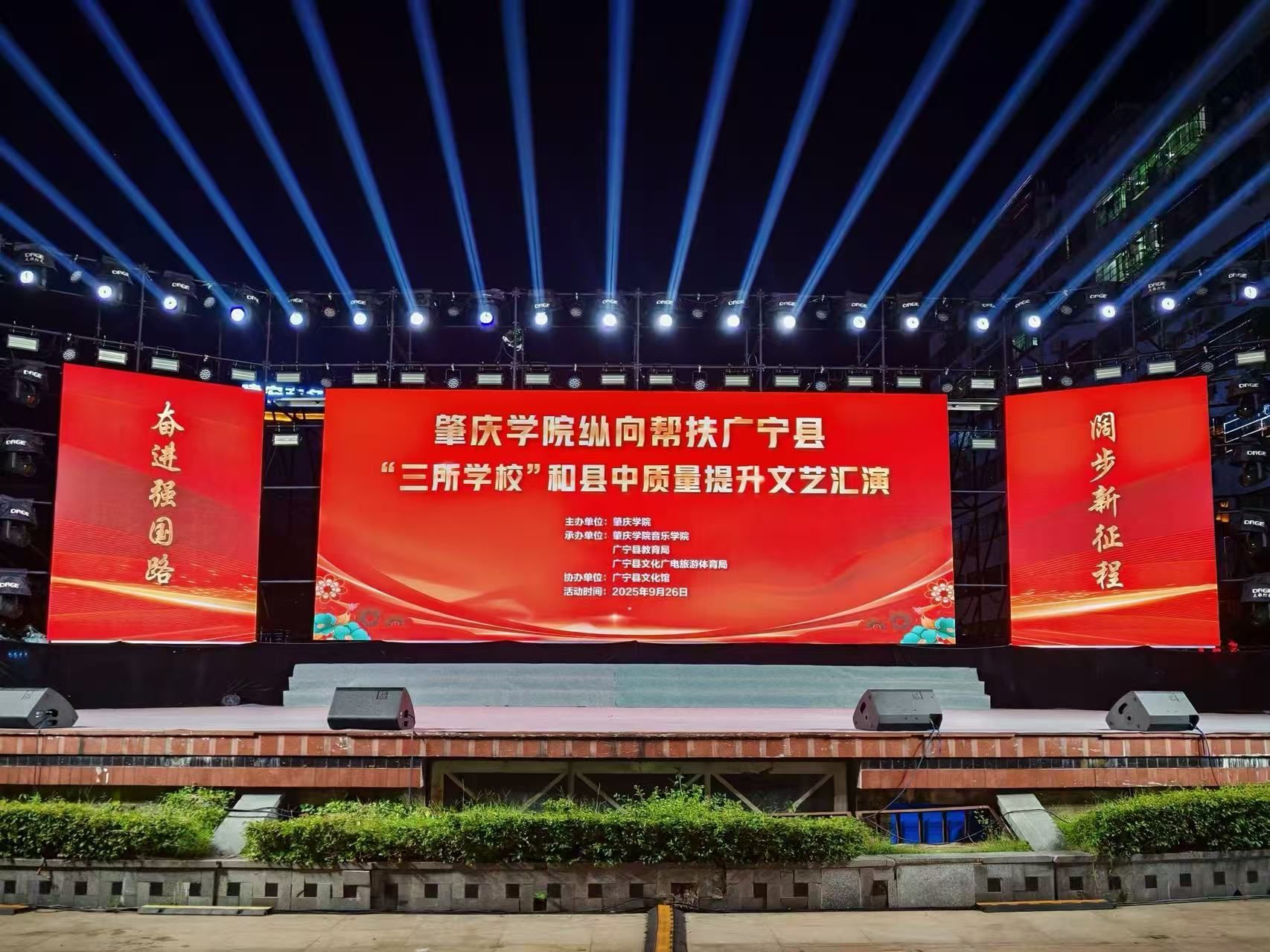 本网讯 为深化校地合作,助力“三所学校”和县中教育质量提升,9月26日晚,肇庆学院纵向帮扶广宁县“三所学校”和县中质量提升文艺汇演在广宁县城东广场举行。