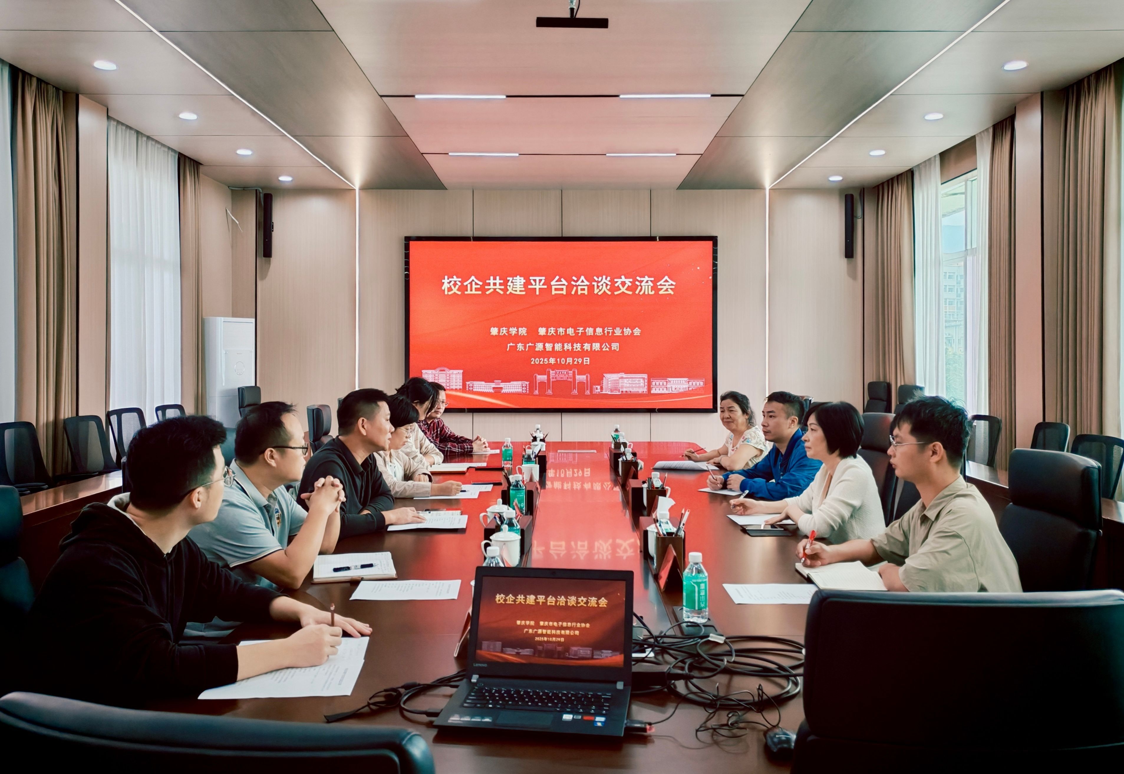 本网讯 为落实学校“三个一”工程建设,深化校企精准合作,推进机器视觉领域产学研深度融合,10月29日,我校与广东广源智能科技有限公司校企共建平台洽谈交流会在第五会议室召开。肇庆市电子信息行业协会秘书长范军,广东广源智能科技有限公司总经理胡志兰及工程师代表,学校相关职能部门和相关二级学院负责人及博士团队参会。