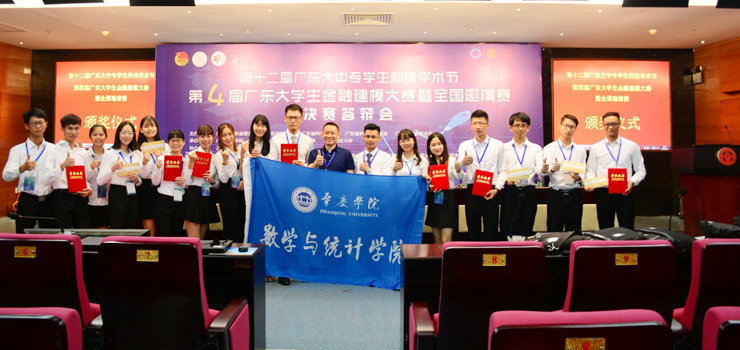 本网讯 8月26日,历时5个多月的第四届广东大学生金融建模暨全国邀请赛在广东金融学院落下帷幕。我校数学与统计学院吴晓、陆庆松、梁彩霞、乔友付等老师指导的团队中,有2支队伍获得二等奖,4支队伍获得三等奖,1支队伍获得大赛创新冠名奖。我校获奖队伍在所有参赛学校中占比最多,创历史最好成绩。