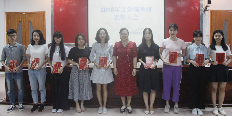 本网讯 6月25日,文学院举行考研表彰大会,对2018年考取硕士研究生的学生进行表彰。学院有关负责人、考研指导教师、班主任、辅导员及应届优秀毕业生和考取研究生的学生代表等共计200余人参加。