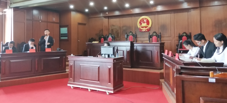 图为在位于第二教学大楼的模拟法庭举行辩论比赛的现场