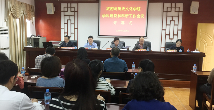 本网讯 4月28日,旅游与历史文化学院2018年度学科建设与科研工作会议开幕,为期两个月的学科建设系列活动就此开启。中国社会科学杂志史学部主任、《历史研究》常务副主编周群博士,校科研处、社科处、校地合作处处长胡海建出席开幕式。学院党政班子、全体教师和学生代表参加。