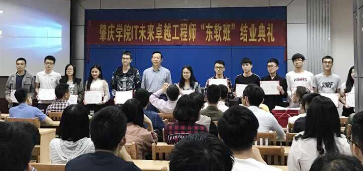 2017年6月以来,计算机学院积极响应学校推进向应用型本科转型发展的要求,以学校分层人才培养的思想为指导,重点打造产教融合的人才培养模式改革。学院从计算机科学与技术、物联网工程、网络工程专业的大三在籍生中择优选拔了50名优秀生,与广州东软睿道教育咨询有限公司进行校企合作协同育人,组建了IT未来卓越工程师“东软班”,探索新工科人才培养的新模式。