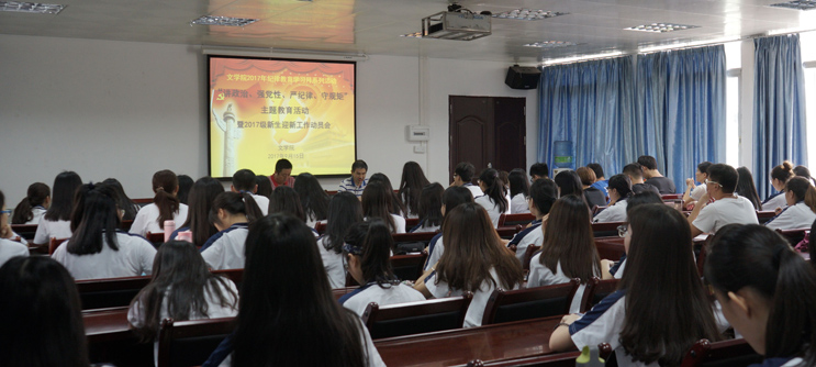 本网讯 9月15日,文学院党委书记陈明华在该院纪律教育学习月主题教育活动暨迎新工作动员会上作充分发挥学生党员干部引领示范作用的主题发言,落实学校党委关于书记院长上好新学期思政第一课的精神。