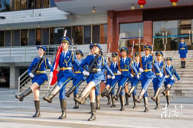 广州科技职业技术大学国旗护卫队成立于2019年,由来自学校各年级的军事爱好者组成,目前共有120余名成员。