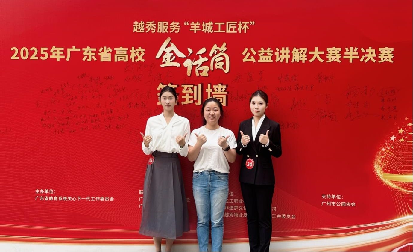 本网讯 近日,由广东省教育系统关心下一代工作委员会主办的2025年广东省高校“金话筒”公益讲解大赛半决赛在广东轻工职业技术大学圆满落幕。我校学子惠文秋、曾秋月凭借扎实的专业素养与精彩的现场表现,从全省50多所高校的80名选手中脱颖而出,双双荣获“优秀讲解员”称号,为学校赢得荣誉。