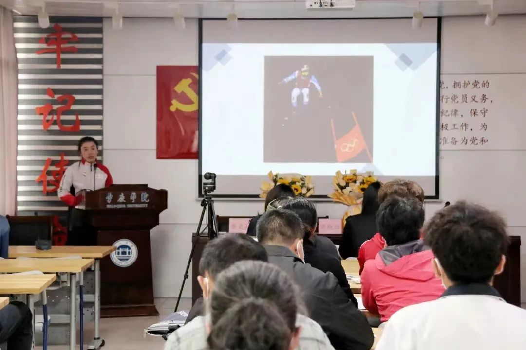 4月20日,体育与健康学院举行以“弘扬冬奥精神,携手走向未来”为主题的党日活动,深入学习习近平总书记北京冬奥会冬残奥会总结表彰大会的讲话精神,分享李灵超老师在北京冬奥会担当技术官员的故事,感悟更快、更高、更强、更团结的奥林匹克精神,感受冰雪运动的激情和快乐。