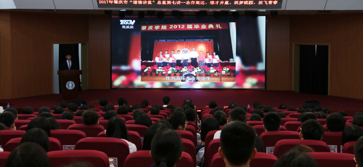最后,杨迎春对此次活动做点评。他表示,道德讲堂是让社会主义核心价值观真正内化为人们的精神追求、外化为人们自觉行动的一种重要形式。举办本次以我校为专场的道德讲堂,能够让师生重温道德经典,学习道德模范的先进事迹,交流加强道德修养的个人感悟,进一步加强道德建设。同时,他勉励大家用实际行动带动和影响更多的人加入到重文明、讲道德的行列中来,为肇庆市创建全国文明城市作出积极贡献。
