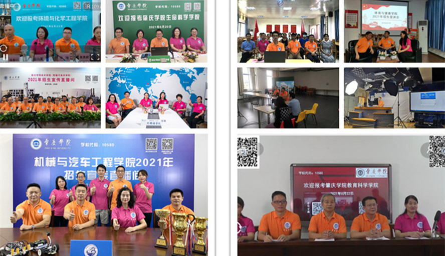 会议结束后,职能部门和二级学院迅速落实会议精神,稳步推进各项宣传工作。继去年招生办首次采取线上直播宣传方式,今年的线上直播宣传扩展至各二级学院。根据安排,6月19日至29日分别组织17个二级学院及职能部门推出超过20场的线上招生宣讲会。截止6月23日,体育与健康学院、生命科学学院、文学院、环境与化学工程学院等学院已完成线上11场招生宣讲会。党委书记、院长、教授、博士齐上阵,在线上从招生信息、专业特色、优势学科、录取原则、高招政策等多种考生渴望了解的内容进行讲解,在线下与考生家长交流互动,引起热烈反响,受到高度评价。
