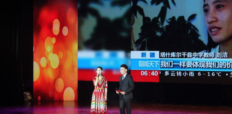 晚会上,由党委宣传部制作的宣传片《扎根帕米尔 无悔青春路》介绍了2012届毕业生刘洁参加“西部计划”、奉献西部教育事业的感人事迹。刘洁本人也亮相晚会现场,向母校表示感谢,并祝愿师弟师妹茁壮成长,赢得师生的热烈掌声。
