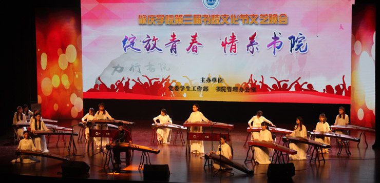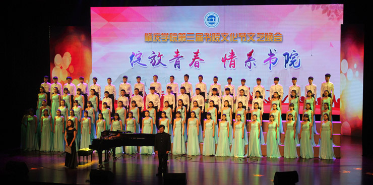 管乐合奏《北京喜讯到边塞》《小匈牙利狂想曲》拉开了晚会序幕。管乐团阵容强大,气势恢宏,以摇曳多姿、富于变化的音乐叩响观众心弦。校友创建的肇庆市童声合唱团表演的粤语合唱《落雨大》,在带给观众童趣和美感的同时,也展示了我校学子创业取得的成果。小提琴协奏《红旗飘飘》、古筝合奏《战台风》,表达了师生们对祖国的热爱、对生活的开拓进取。舞蹈《母仪天下》讲述了传说中龙母的善良、博爱,传扬了中华民族的传统美德。舞蹈《砚魂》,反映了我校立足地方文化,着力建设砚园文化的追求。独唱《老师,我总是想起你》表达了学子对于师恩的感激。小号演奏《梁祝》,赞美了真挚的人类情感,透视出我国传统文化的深厚魅力。压轴节目合唱《肇庆美》,通过勾勒肇庆的美景,让人们充分感受到我市经济社会发展的盛大气象,为晚会画上圆满的句号。