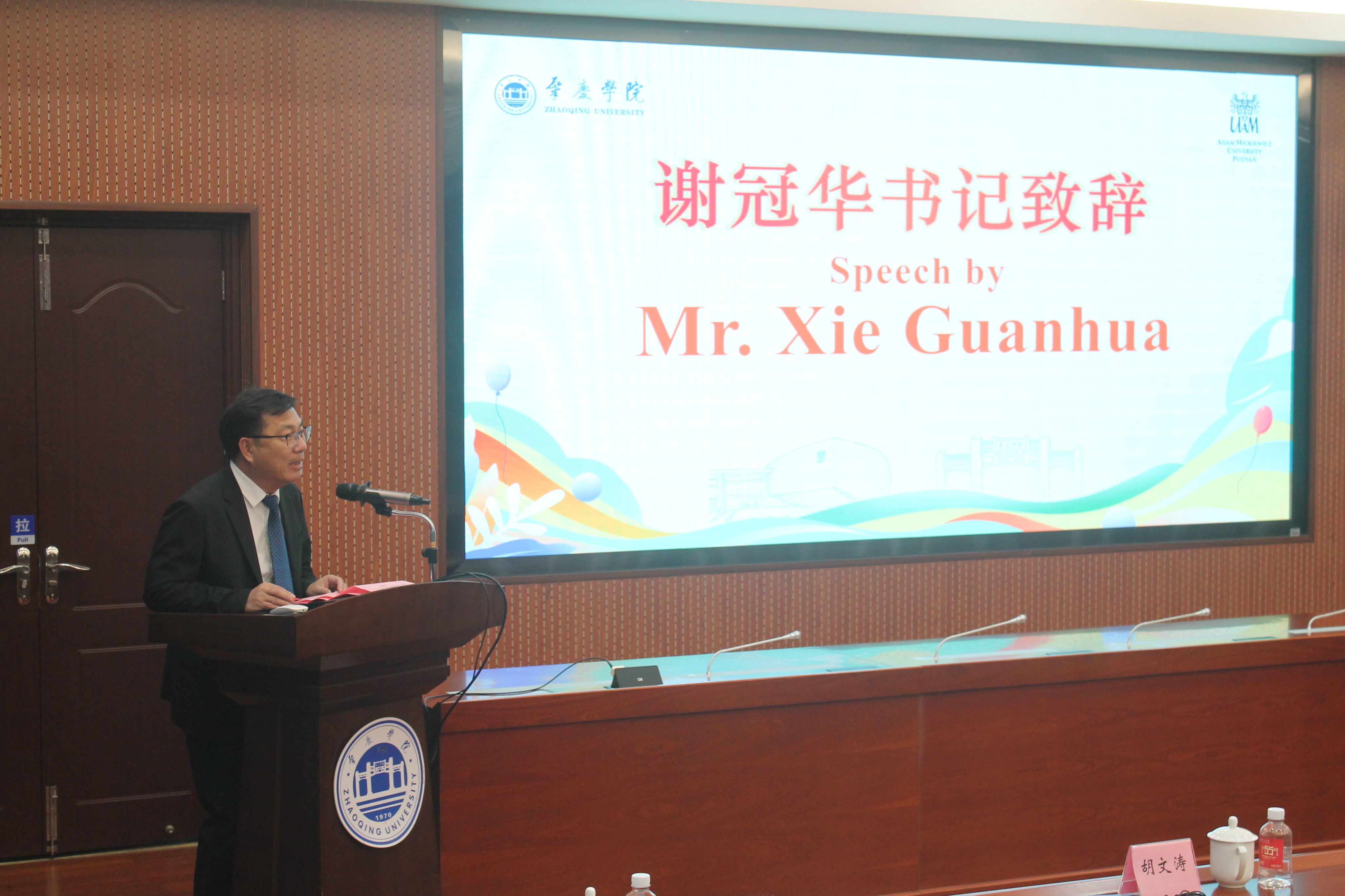 谢冠华书记在致辞中表示,中波友谊源远流长,我校与密兹凯维奇大学多年来持续推动人员往来、教学科研合作,在中波关系发展和两国人文交流中做出了积极贡献,取得了有目共睹的成绩,双方也在长期的合作中培养了深厚的友谊。期待在总领事先生的积极支持下,在密大伙伴的精诚合作下,以两校合作十五周年为契机,加大力度充实两校合作内容、深化两校合作层次,为中波人文交流贡献“波兹南-肇庆”力量。