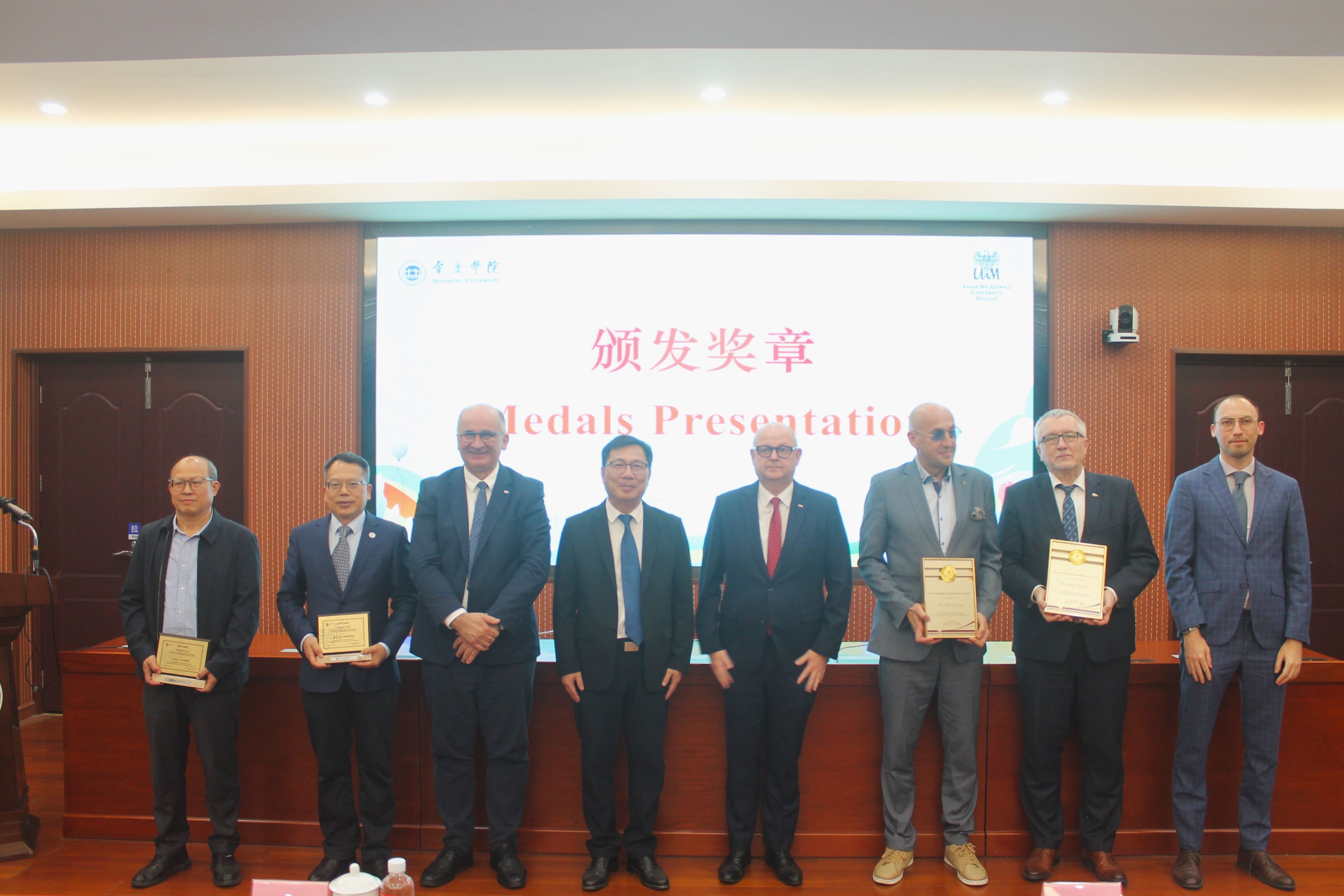 在获奖感言中,拉法尔·蒂姆切克教授表示在肇庆学院他总是能感受到强烈的亲切感与归属感,并对未来双方更广领域的合作充满期待。黎玉琴教授回顾了我校从2013年首次引进波兰外教,到开设波兰语兴趣班,再到两校全方位合作的发展历程,他表示能够深度参与两校合作倍感荣幸,期待两校合作继往开来,再创辉煌。
