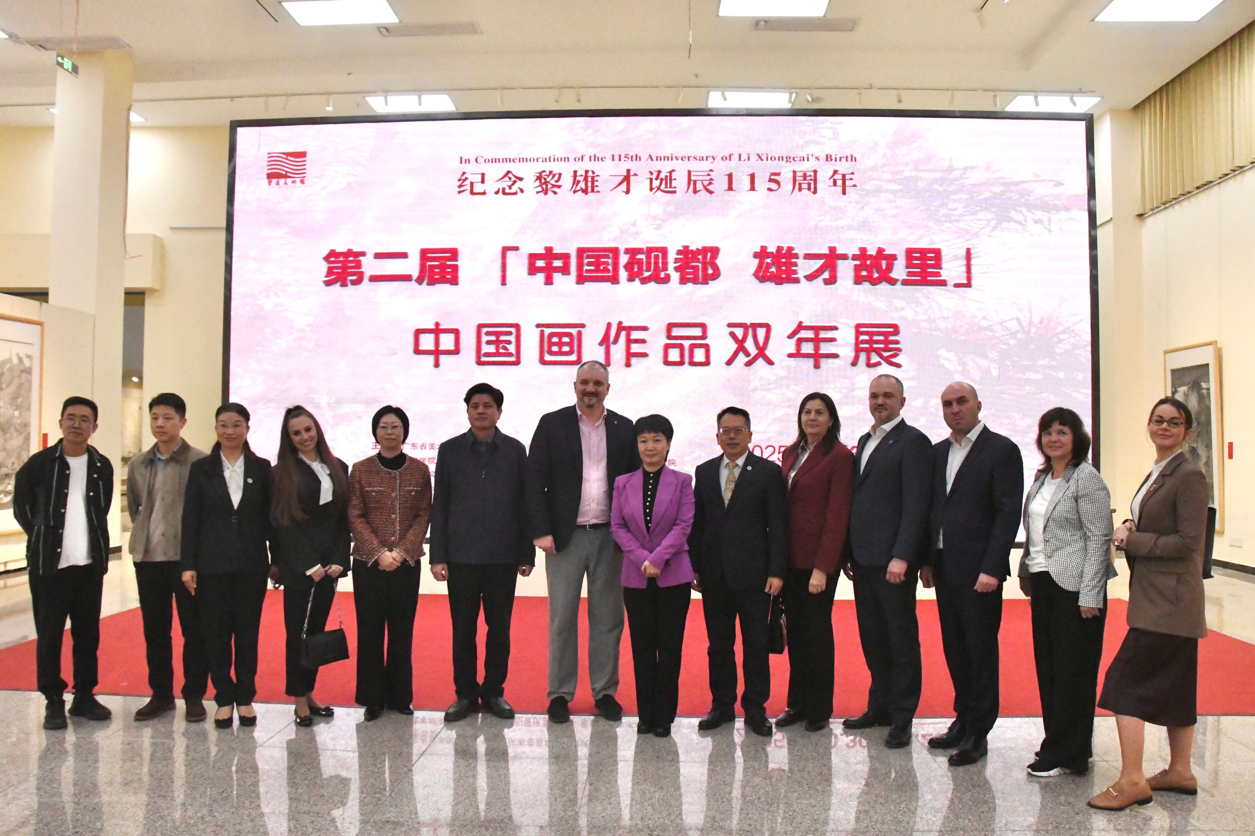 访问过程中,代表团先后参观我校美术馆与陈熹音乐厅,实地感受学校在艺术教育与文化传承方面的深厚底蕴。时值第二届“中国砚都雄才故里”中国画作品双年展在我校美术馆展出,俄罗斯友人驻足细观,对中国水墨画的笔墨意趣与精神内涵表现出浓厚兴趣,并在交流中对我馆坚持面向社会开展公共美育的实践表示赞赏。
