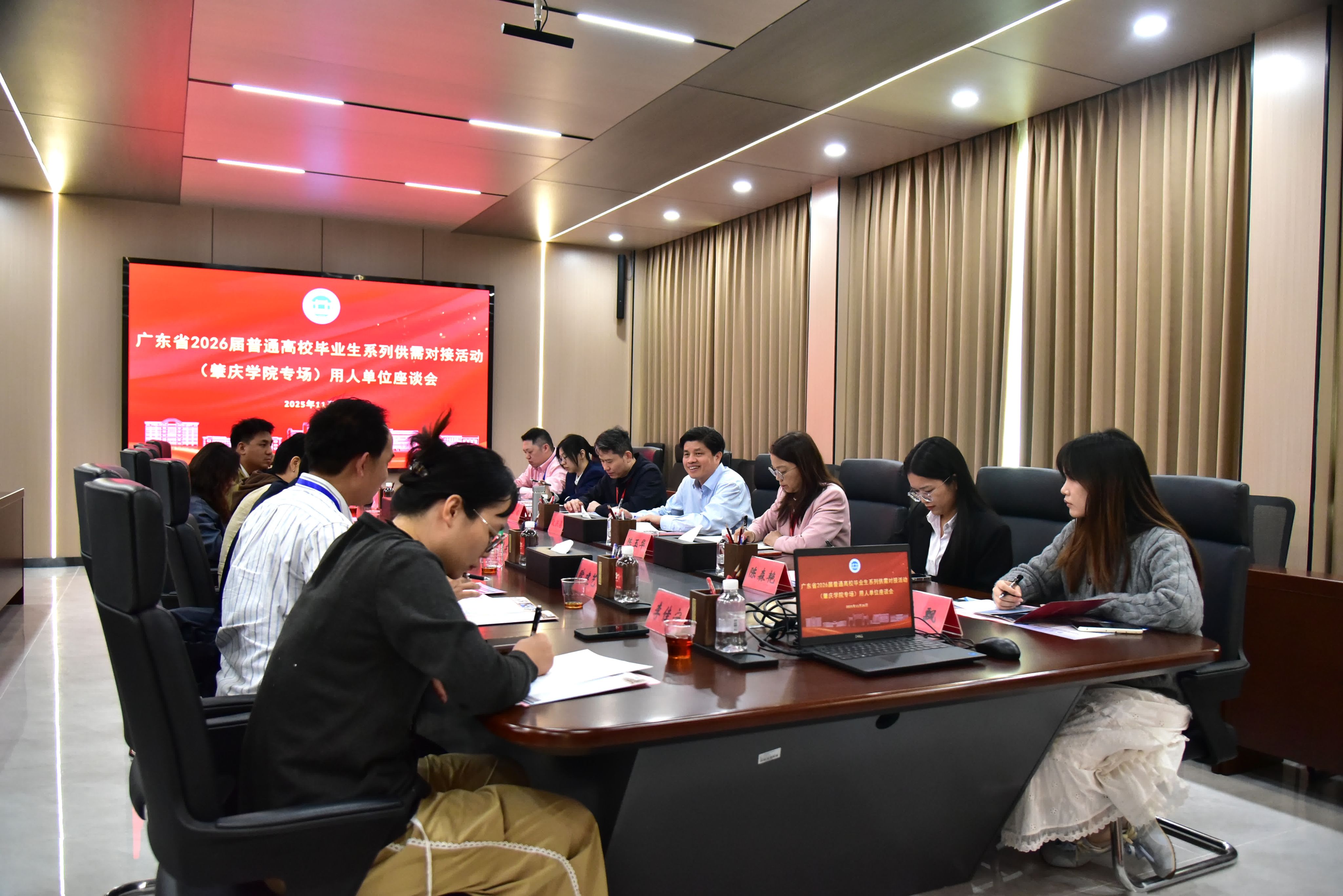 招聘会期间,同步举行了用人单位座谈会,欧洪湛出席并讲话。他对用人单位来校参加招聘活动表示感谢,并介绍了我校概况和就业工作等情况;期待能够以此次供需对接活动为契机,进一步深化与各用人单位的合作,提升合作实效,强化校政企联动。与会单位介绍了单位概况、用人需求及校政企合作意向。双方围绕学生实习见习、产教融合、人才供需精准对接等展开了深入交流,并提出了一系列富有建设性的意见和建议。