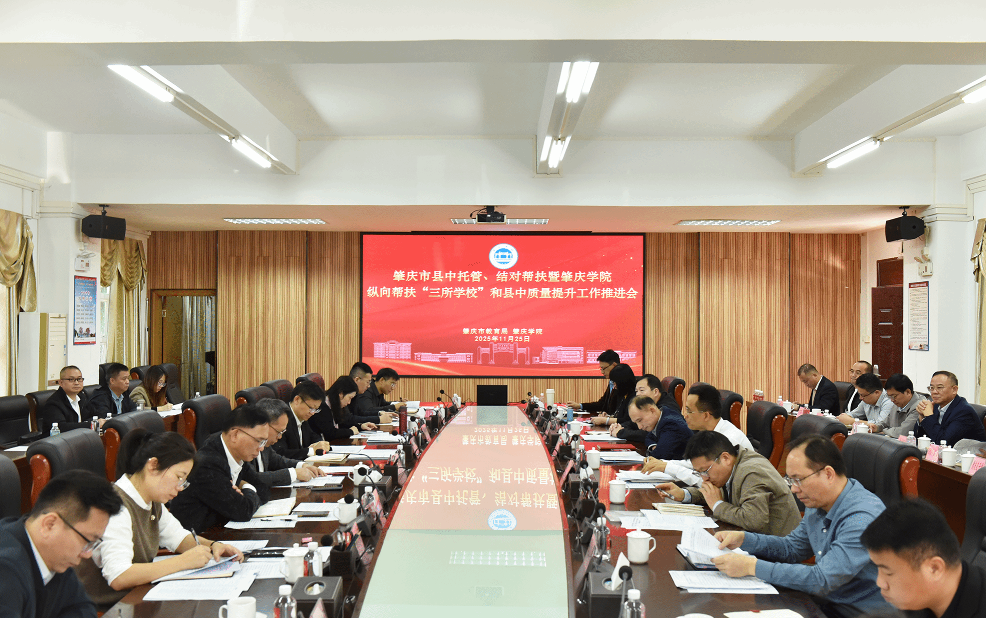 本网讯 11月25日,肇庆市县中托管、结对帮扶暨肇庆学院纵向帮扶“三所学校”和县中质量提升工作推进会在临峰厅成功举行。会议旨在深入实施“百千万工程”教育行动,落实“三所学校”和县中质量提升工作,总结交流县中托管与结对帮扶经验,部署下一阶段重点任务。副校长胡文涛、肇庆市教育局局长谢先群出席会议,市教育局相关科室、各县(市、区)教育局及市属高中负责人参加会议。