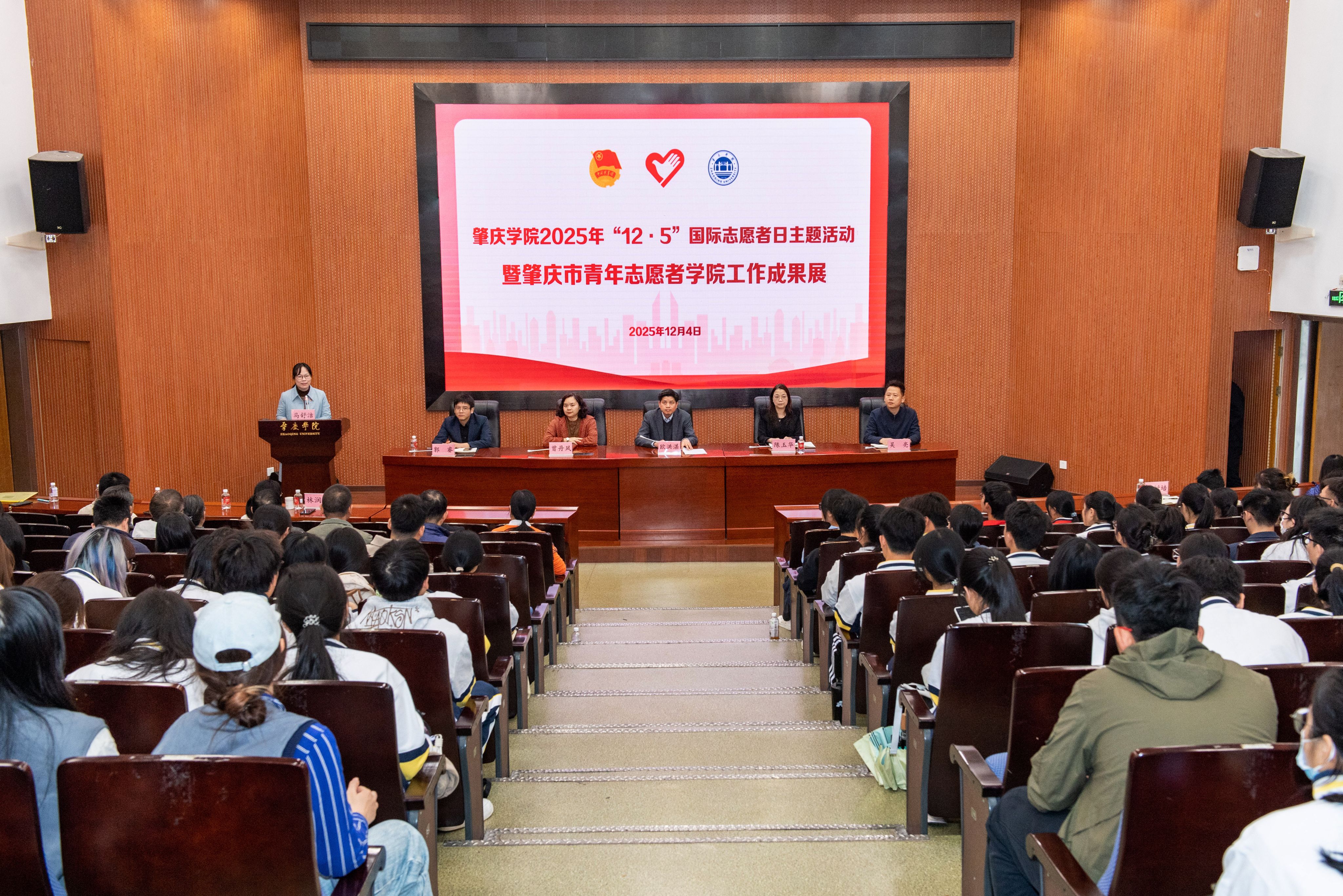 本网讯 12月4日,学校“12·5”国际志愿者日主题活动暨肇庆市青年志愿者学院工作成果展在图书馆学术报告厅举行。校党委副书记欧洪湛出席活动,相关职能部门主要负责人,各二级学院党委副书记、团委书记,获奖志愿服务组织、个人代表及各二级学院志愿者师生代表参加。校团委书记马舒洁主持活动。