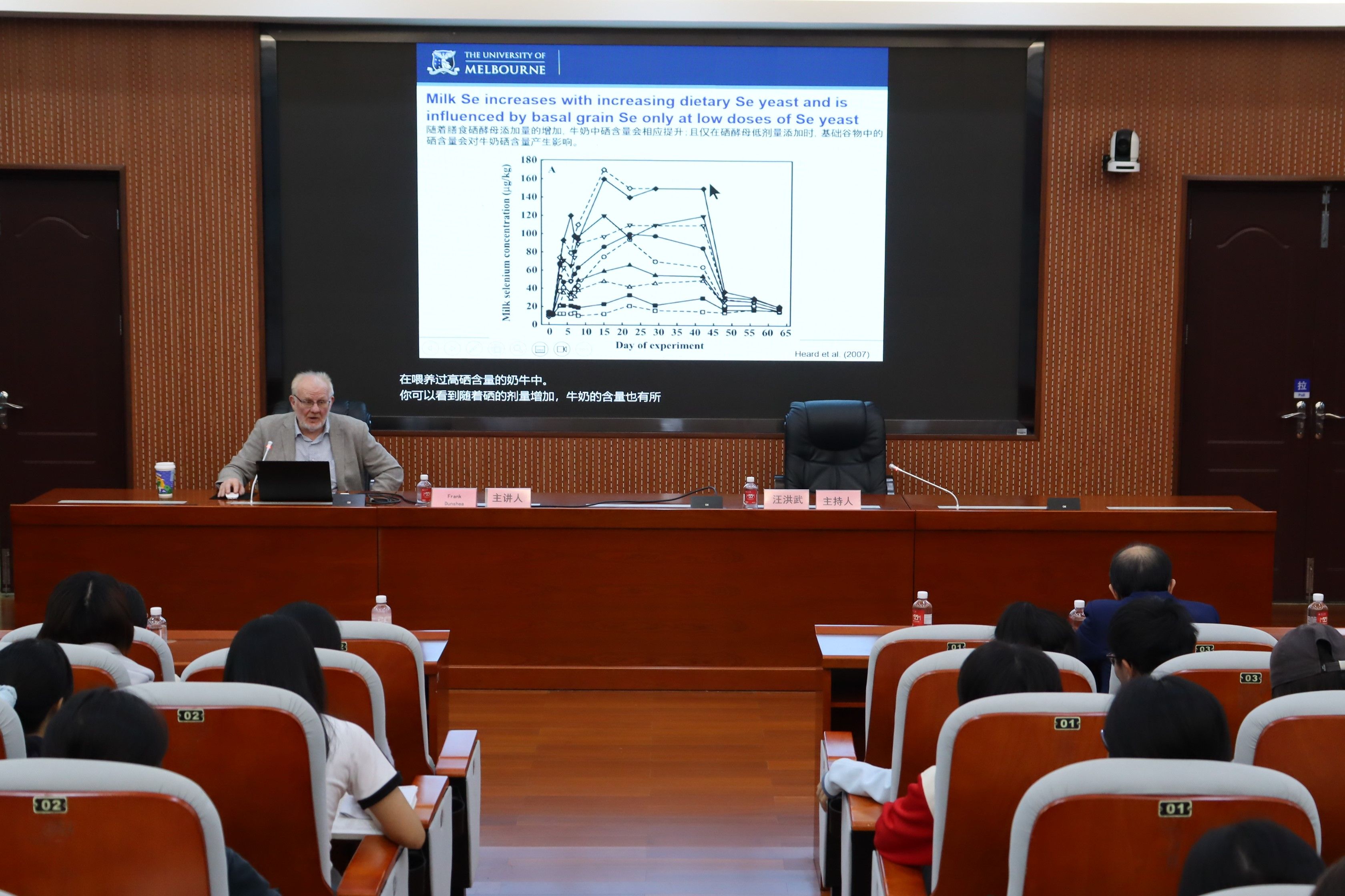 12月3日下午,Dunshea教授主讲的《动物营养调控肉品质的研究》专题讲座在行政楼第二会议室举行,由食品与制药工程学院院长汪洪武主持,学院师生共120余人参加。讲座紧扣澳大利亚猪肉产业面临的“低脂化导致肌内脂肪不足、胶原蛋白偏高致肉质偏硬”等现实难题,系统展示了其团队多年研究成果:通过添加菊粉、铁、卵磷脂等饲料添加剂,可显著提升肌内脂肪含量、改善肉质嫩度与风味,使猪肉多汁性提升15%、风味提升9%。同时,教授还分享了提升牛奶与猪肉中硒含量的创新技术,验证了蛋白结合硒的安全性与功能性,为功能性食品开发及健康膳食提供了科学路径。现场提问踊跃,师生就技术转化、机制解析等问题进行了深入交流,气氛热烈,反响积极。