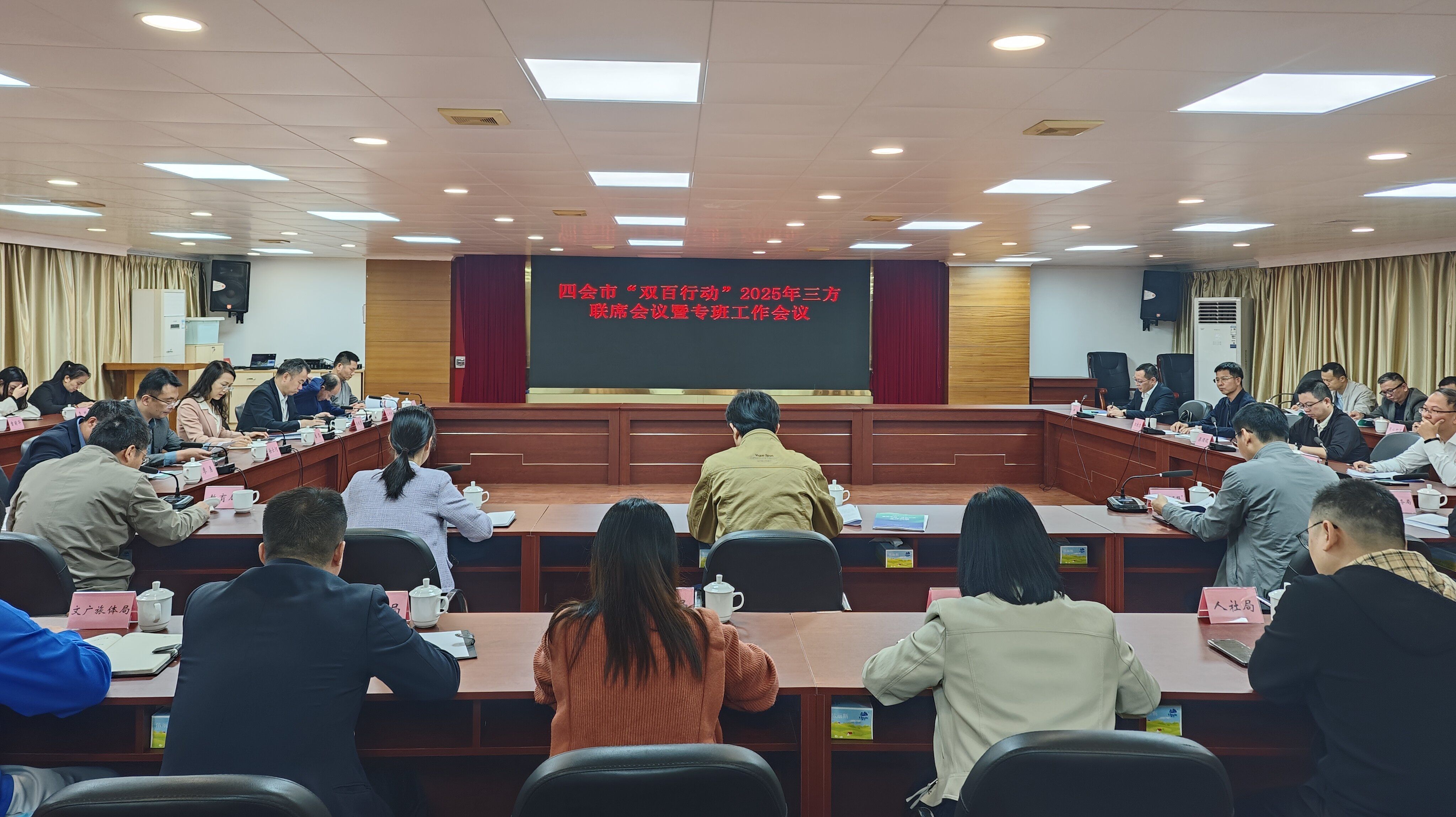 本网讯 为深化校地合作,落实“双百行动”“三年初见成效”总要求,12月23日,2025年四会市“双百行动”三方联席会议暨专班工作会议在四会市人民政府行政大楼召开。四会市委副书记、市政协党组书记、主席候选人刘金升,副市长黎一斐,市政协副主席汤家欢,校长李琴,副校长肖起清, 广东科学技术职业学院党委副书记江乐忠出席会议。三方相关部门负责同志参会。会议由黎一斐主持。